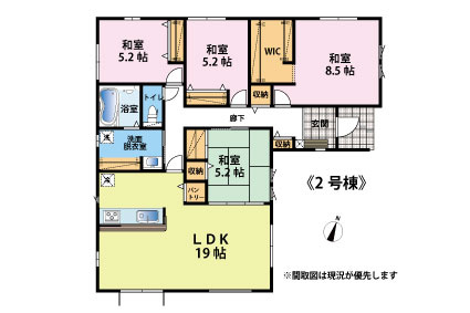 LDK 19.1帖/洋室 6.4帖/洋室 4.5帖/洋室 4.5帖/洋室 4.5帖 - 向き